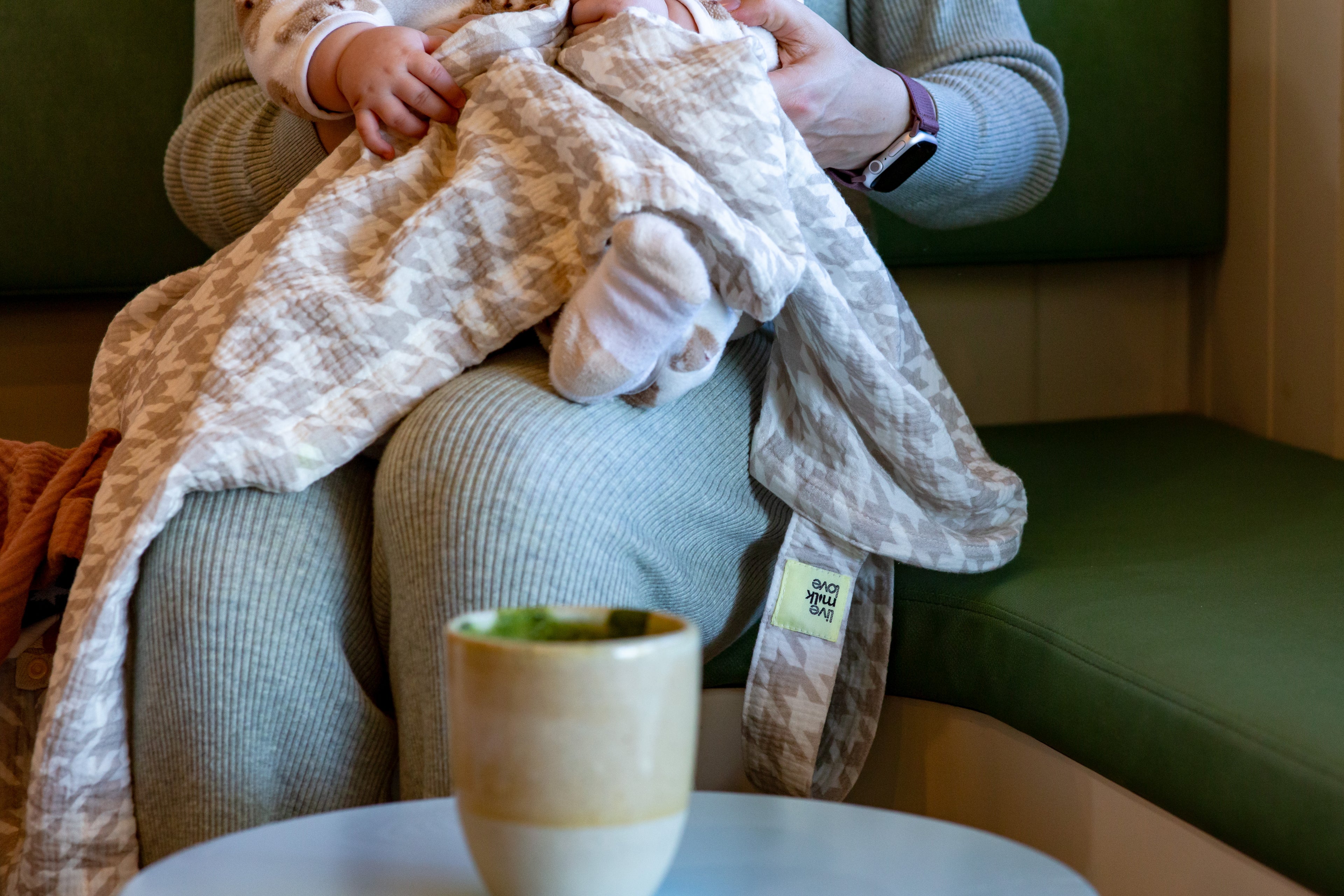 Designed with a modern style in neutral tones. Lightweight and easy to slip on, so you can sip your coffee, chat with friends, and feed with ease.